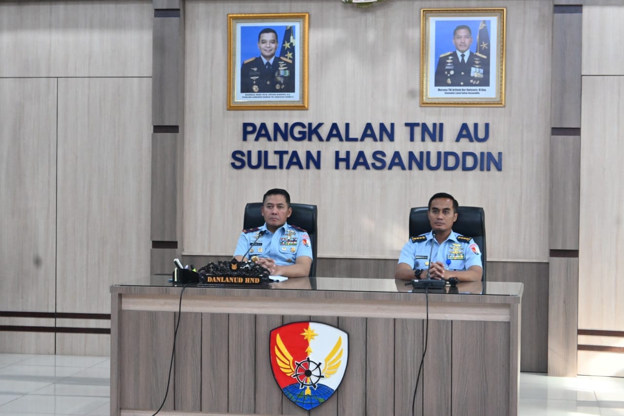 Makassar – Danlanud Sultan Hasanuddin Marsma TNI Arifaini Nur Dwiyanto, M.Han., didampingi para pejabat Lanud Sultan Hasanuddin mengikuti Rapat Kerja Teknis (Rakernis) Komando Daerah TNI Angkatan Udara II (Kodau II) secara virtual di Ruang Rapat Mako Lanud Sultan Hasanuddin, Senin (23/2/2026).