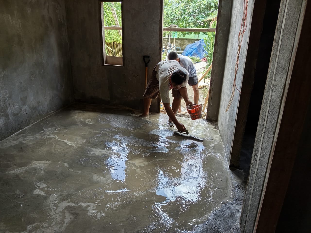 Pekerjaan flur lantai dilakukan untuk memperkuat dan meratakan permukaan lantai agar lebih kokoh dan nyaman, sementara pemasangan lisplang bertujuan memperindah tampilan rumah serta melindungi bagian atap dari kerusakan.