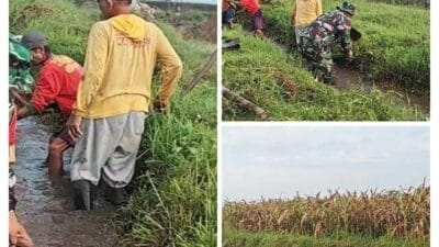 Blitar – Babinsa secara rutin membersihkan saluran irigasi sawah bersama petani melalui kegiatan gotong royong…