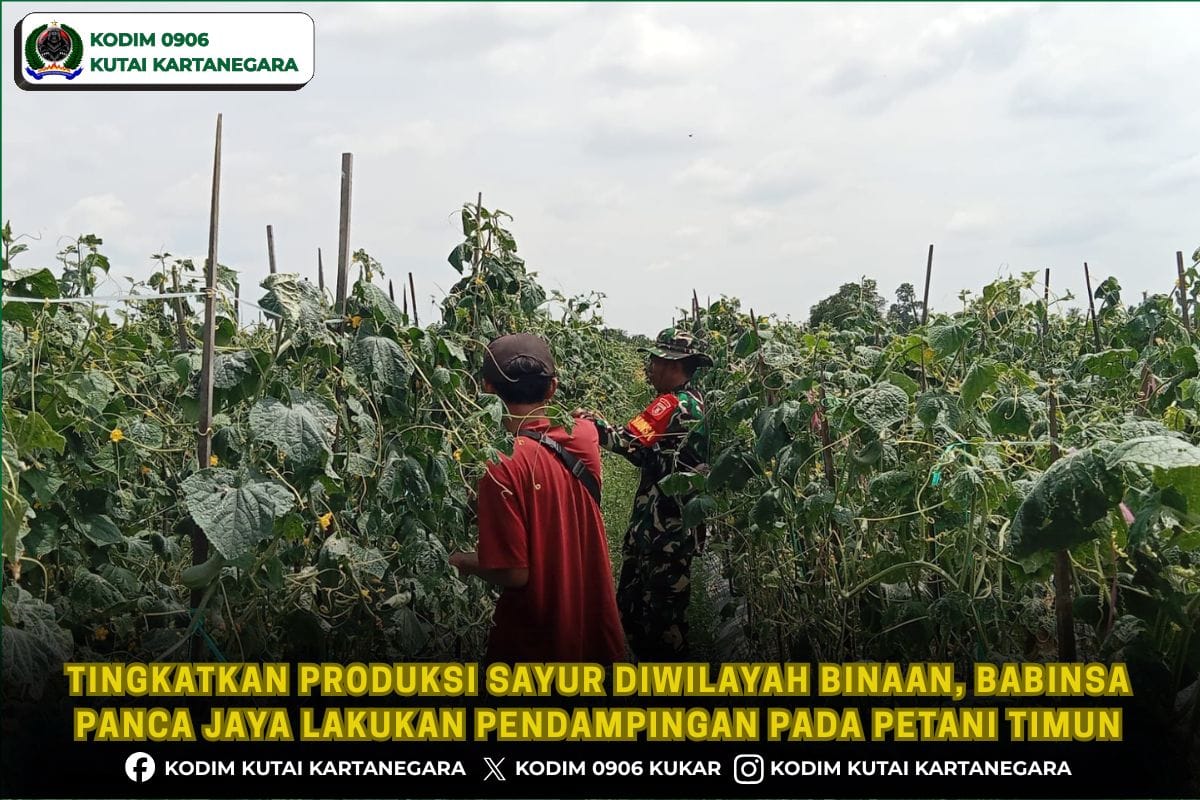 Kutai Kartanegara. mojopaitnews.com- Anggota Babinsa Koramil 0906-08/Muara Kaman Sertu Sahroji lakukan pendampingan pada petani timun yang tergabung dalam kelompok tani Berkah jaya berada di desa panca Jaya Kecamatan Muara Kaman, 10/3/26.