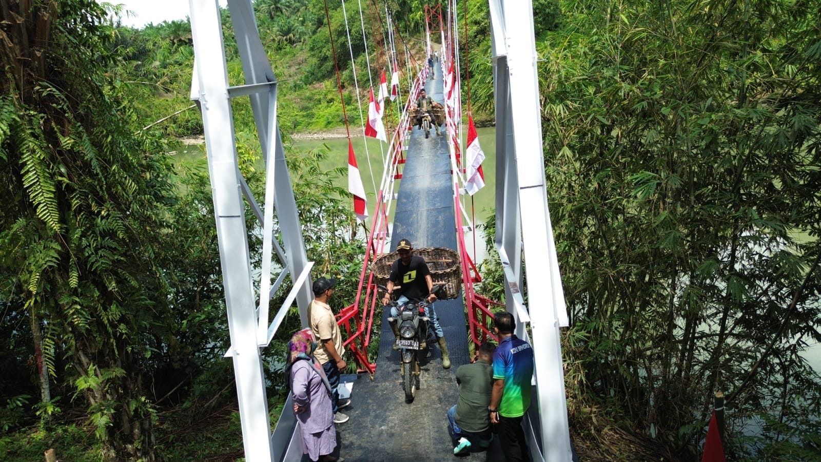 Langkat – Komitmen membantu mengatasi kesulitan rakyat kembali ditunjukkan prajurit TNI AD melalui rampungnya perehapan Jembatan Gantung Perintis di Desa Empus, Kecamatan Bahorok, Kabupaten Langkat, Sabtu (14/2/2026). Infrastruktur vital tersebut kini kembali kokoh dan siap mendukung aktivitas warga.