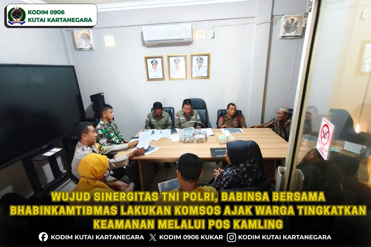 Kutai Kartanegara. mojopaitnews.com- Jaga stabilitas keamanan dan ketirtiban yang ada di lingkungan masyarakat, anggota Koramil 0906-02/Loa Kulu Serma Siswanto bersama bhabinkamtibmas lakukan kegiatan komsos dengan perangkat desa dan warga bertempat di ruang aula yang berada di Desa Jongkang Jalan Mangkunegara rt 3 Kecamatan Loa Kulu, Rabu 15/4/26.